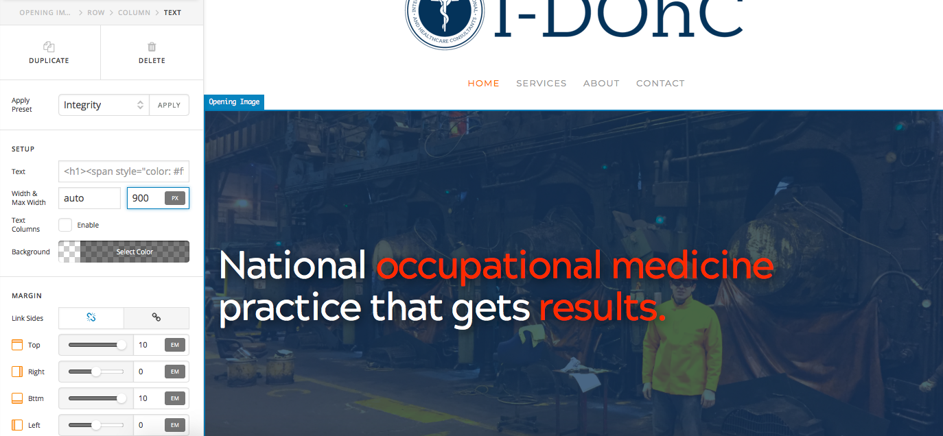 However, by taking off the inner container option (which definitely makes the header look better in the mobile), the text becomes too wide on the desktop version. I’d like it to be the same width as the other text that have the inner container option on.