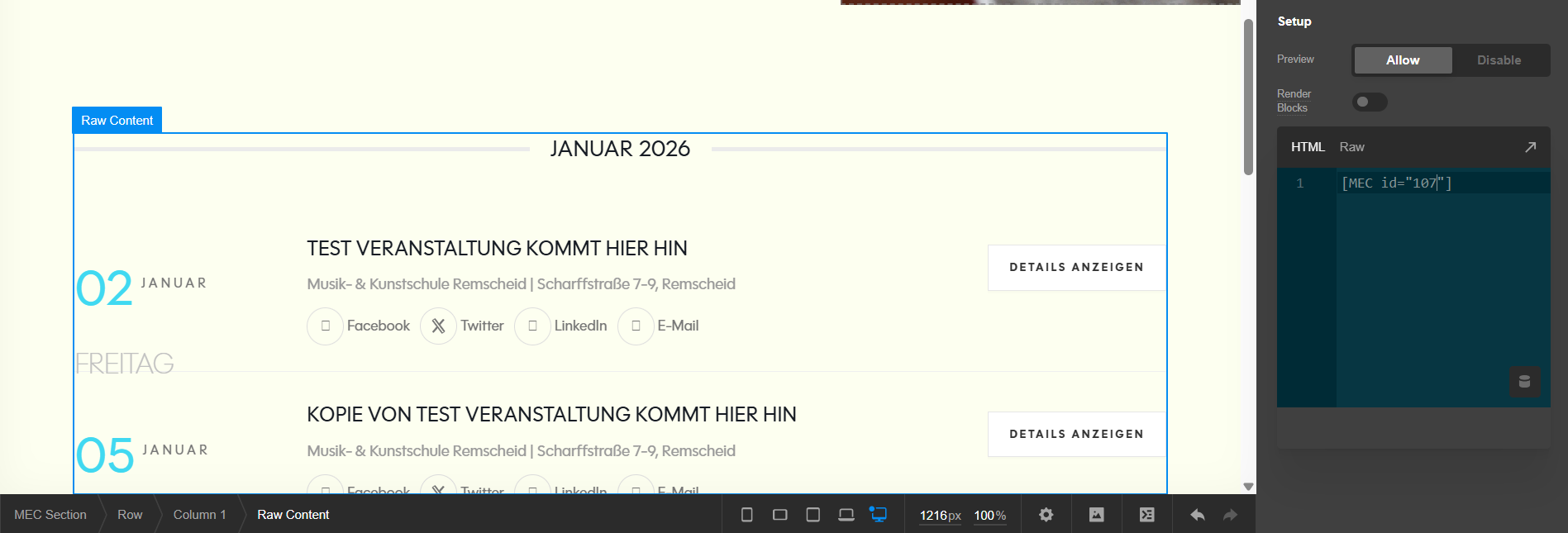 Where does the 107 come from? Because I can see the events too if I enter it but can’t find it in the MEC shortcodes.