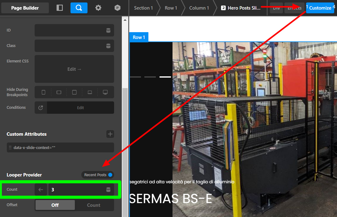 The Hero Posts Slider displays 3 of your Recent Posts. You can see that by inspecting the Looper Provider setup of the Hero Posts Slider element.