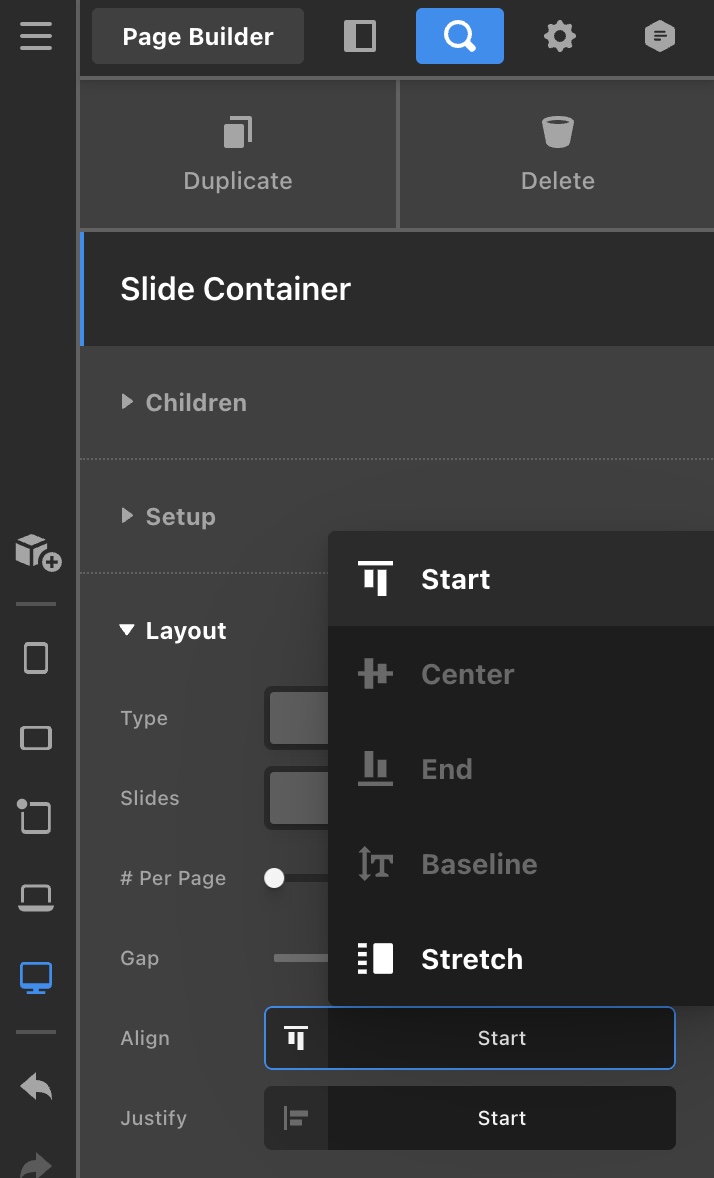 Thanks for writing in! Yes, it is possible. Please edit your page and click on the Slider Container element. You will have to change the Slider Container > Layout > Alignment from “Stretch” to “Start”.