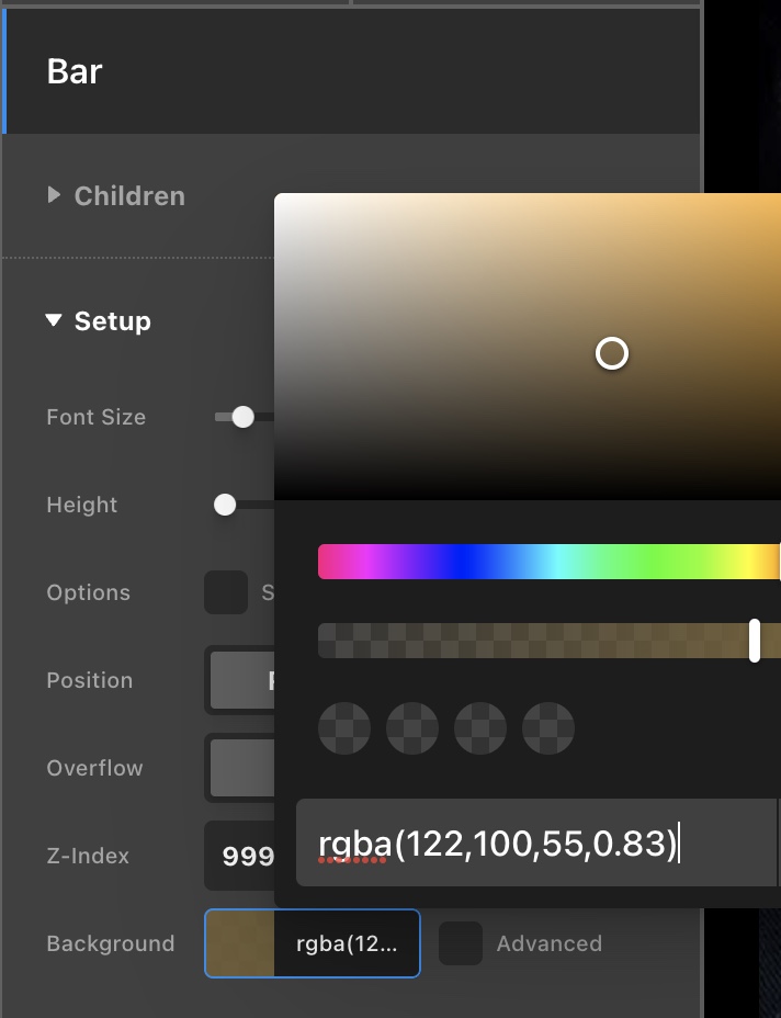 In your Bar element, you have inserted a background color of rgba(122,100,55,0.83).
