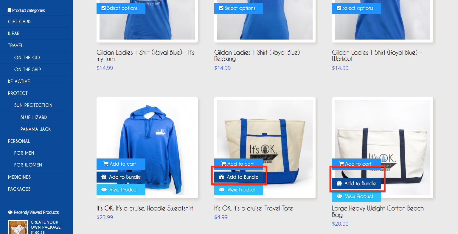 The site in question is dev.itsacruisego.com. We have a plugin that allows the customer to create a custom bundle, and the plugin adds two new buttons (Add to Bundle and View Product). For almost every product in a category it honors the following CSS I added: