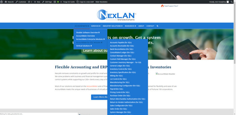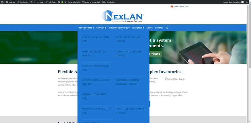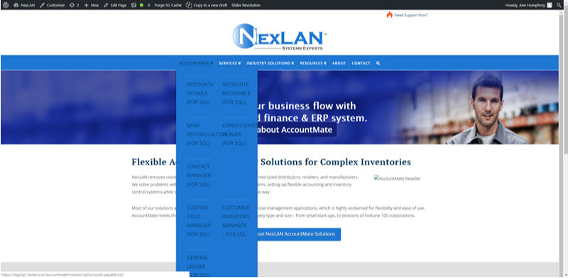 Our X site has what seems to be a 2-column megamenu (see nexlan.com and hover over AccountMate > AccountMate Modules to see the 2-column flyout menu). Now I’m working on a staging site to replace that section with two new megamenus.