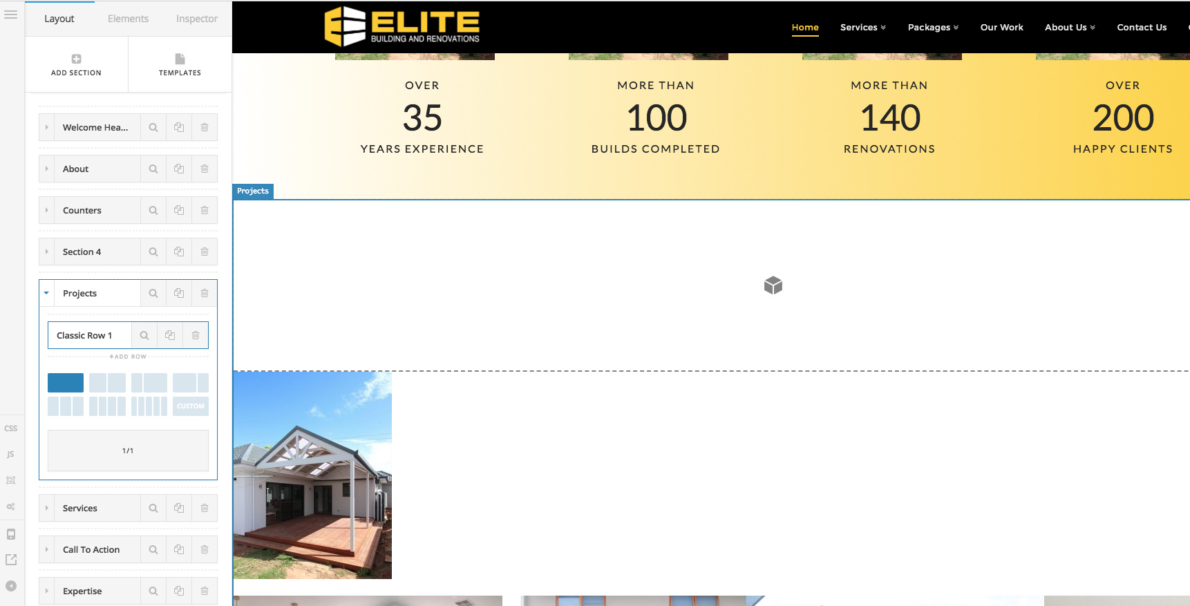 Note: all sections in above (eg. Counters, About, Projects) EXCEPT ‘Section 4’ are classic sections… Section 4 is a V2 section.