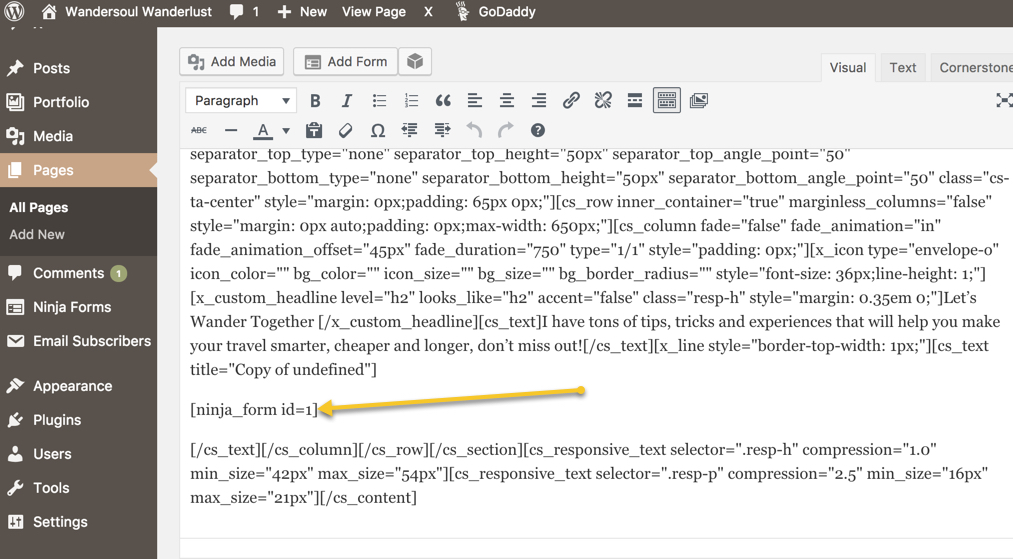 I have tried several times now to add a contact ninja form to my homepage with no luck.