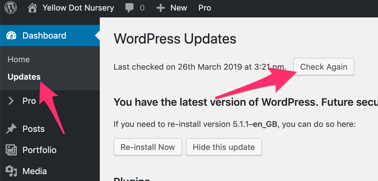 Once validated again, try going to the Wordpress admin’s updates dashboard and click on Check Again.