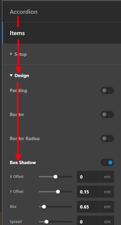 You can remove the Box Shadow and Border of the Accordion from the Accordion > Items > Design as shown in the given screenshot.