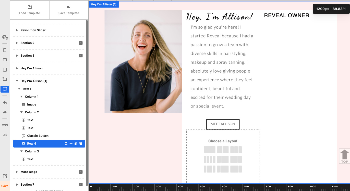 This is what I’ve made so far. How can I get rid of the pink in between the photo so it’s all white? How can I put text to the right of the “Hey, I’m Allison” section?
