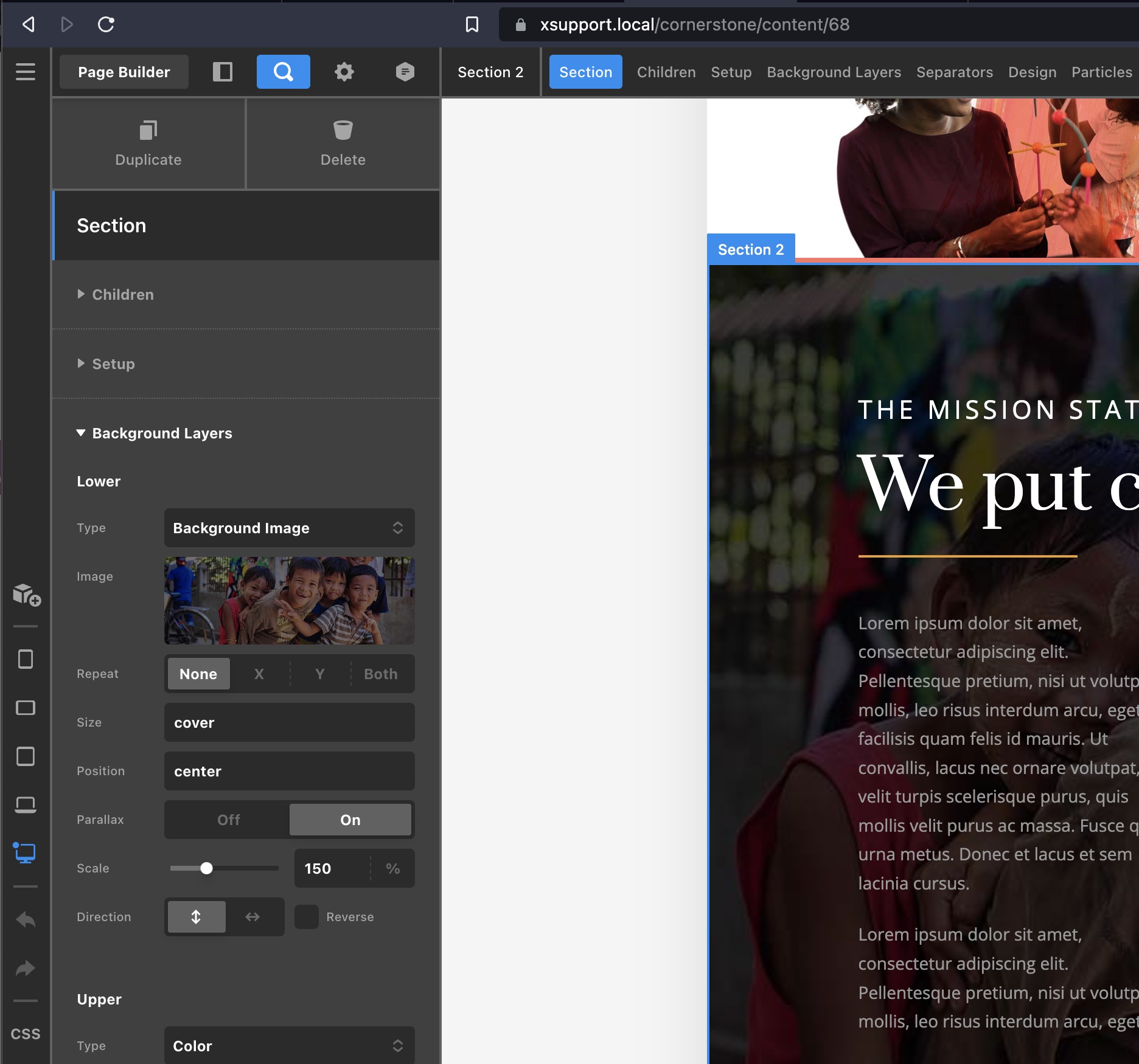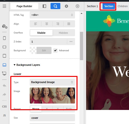Go to the Outline tab and select Section 2 where you can find the background settings.