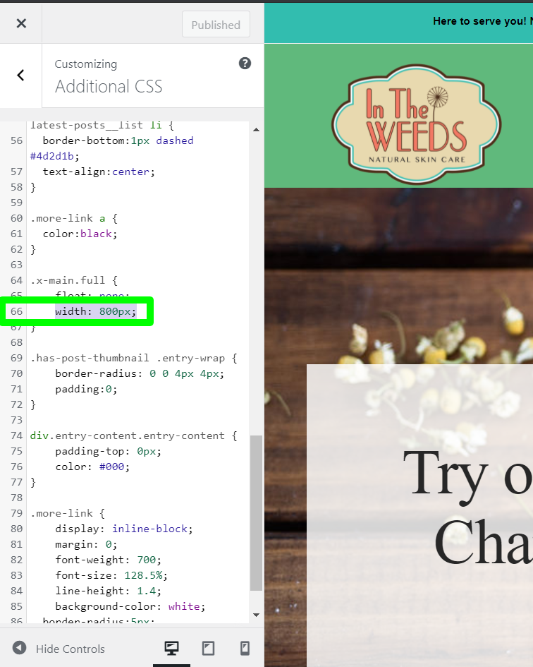 Here it is before any updates (what it should look like): https://shopintheweeds.com/