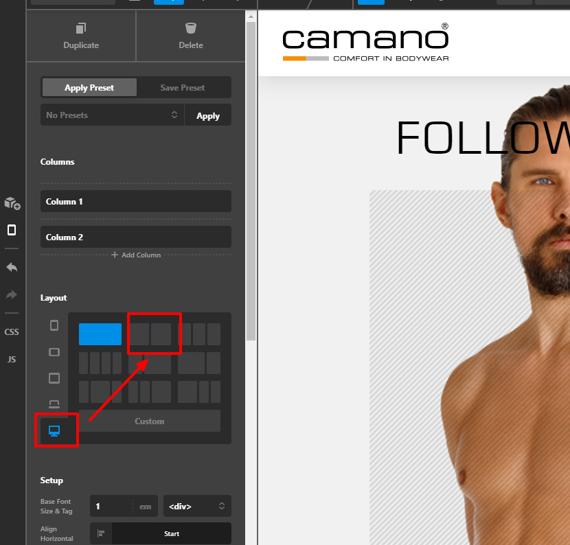 Same scenario on the Section 3 row, just also change the XL to 1 because currently it is set to 4 columns.