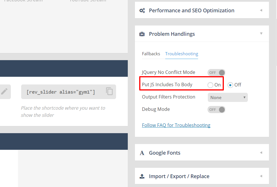 errorMessage += "<br><br> To fix it you can:<br> 1. In the Slider Settings -> Troubleshooting set option: <strong><b>Put JS Includes To Body</b></strong> option to true.";