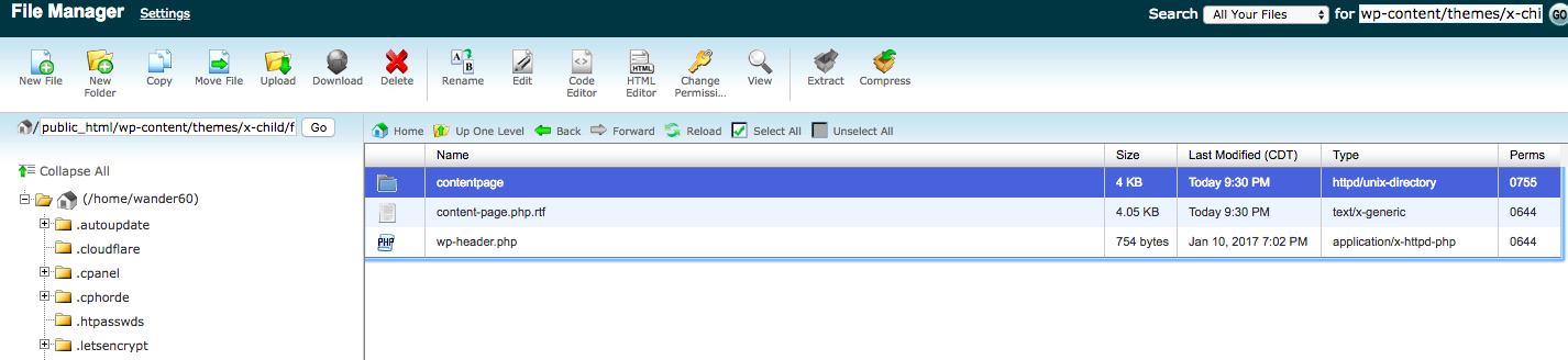 4] Upload this file to your server in the child theme’s folder wp-content/themes/x-child/framework/views/integrity/