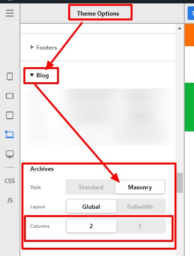 Regretfully there is no option for that at the moment. You can have 2 or 3 columns layout on Masonry layout only. In case if you want a Masonry layout with 2 or 3 columns then you need to go to the Theme Option—>Blog—>Archive