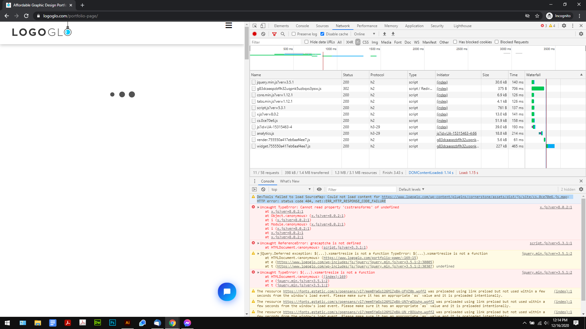 “DevTools failed to load SourceMap: Could not load content for https://www.logoglo.com/wp-content/plugins/cornerstone/assets/dist/js/site/cs.0ce70e6.js.map: HTTP error: status code 404, net::ERR_HTTP_RESPONSE_CODE_FAILURE”
