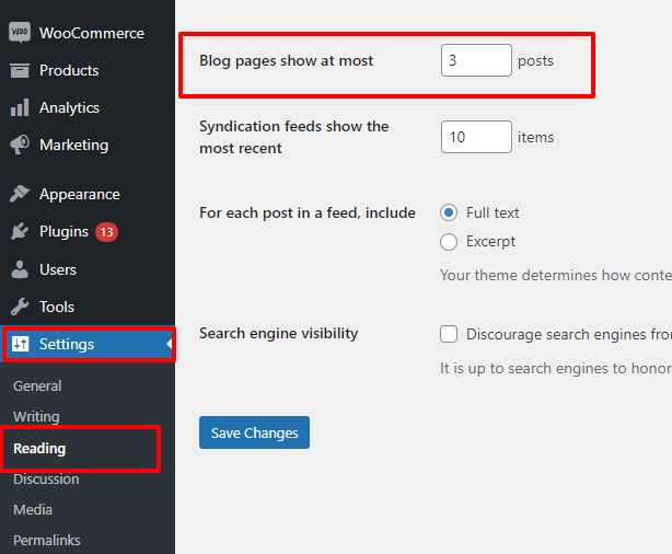 In case the pagination is not working please make sure you have set the correct number of the post per page from the WordPress dashboard —>Settings —>Reading—>Blog pages show at most