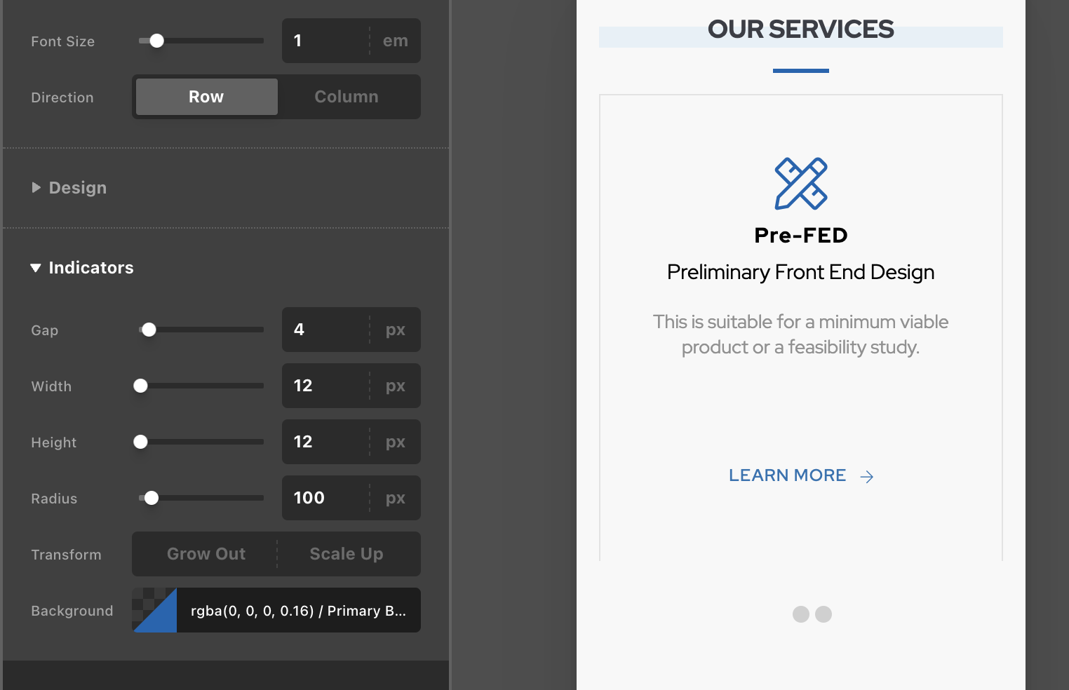 Minor bug with the setting of colours of the Slide Pagination buttons - you can see below the highlighted button should be Blue (there are 3 buttons, but the first is transparent instead of Blue), but it doesn’t render this Blue on both the back and front-end: