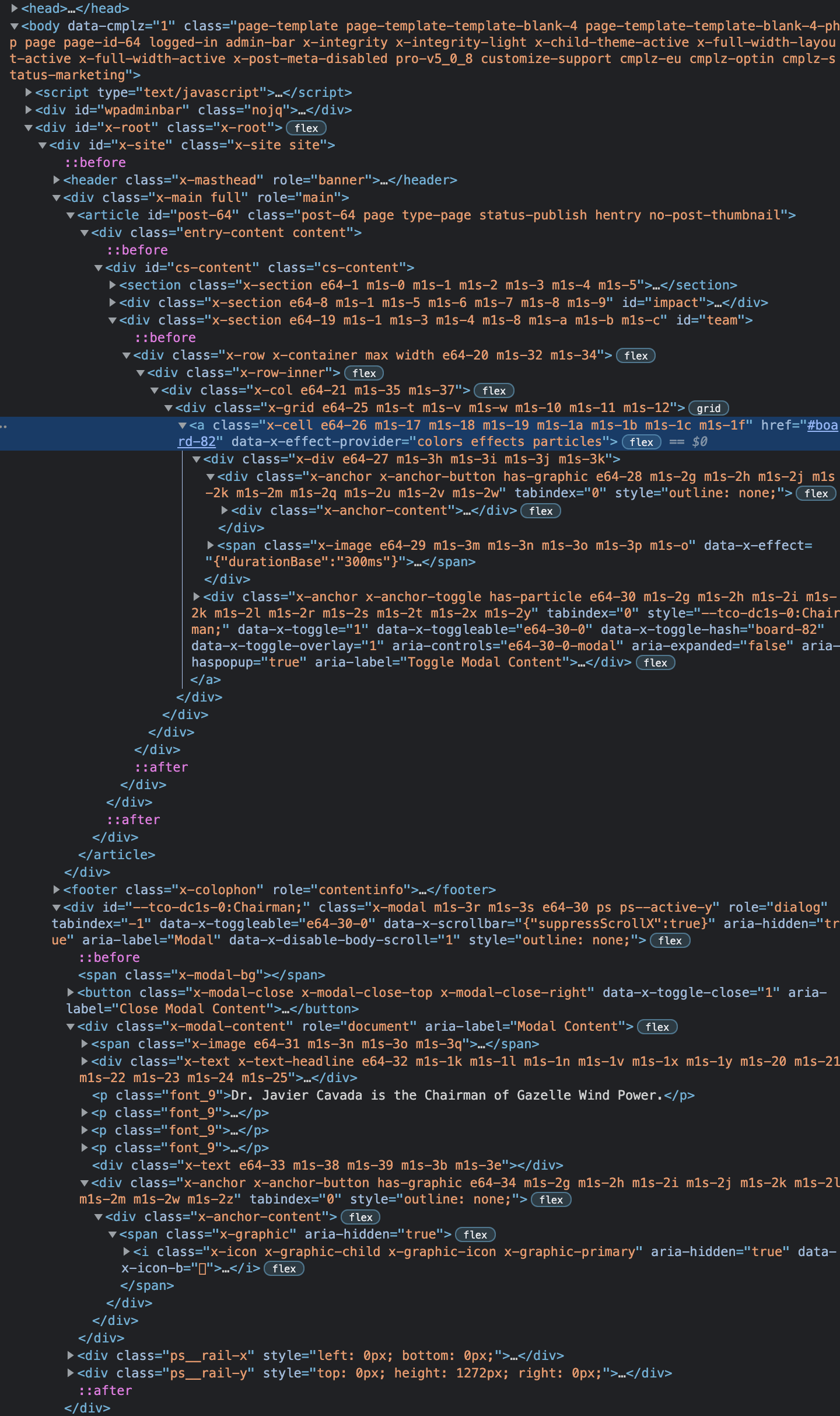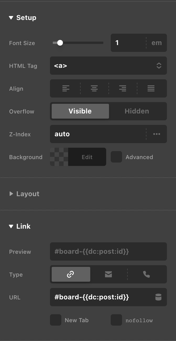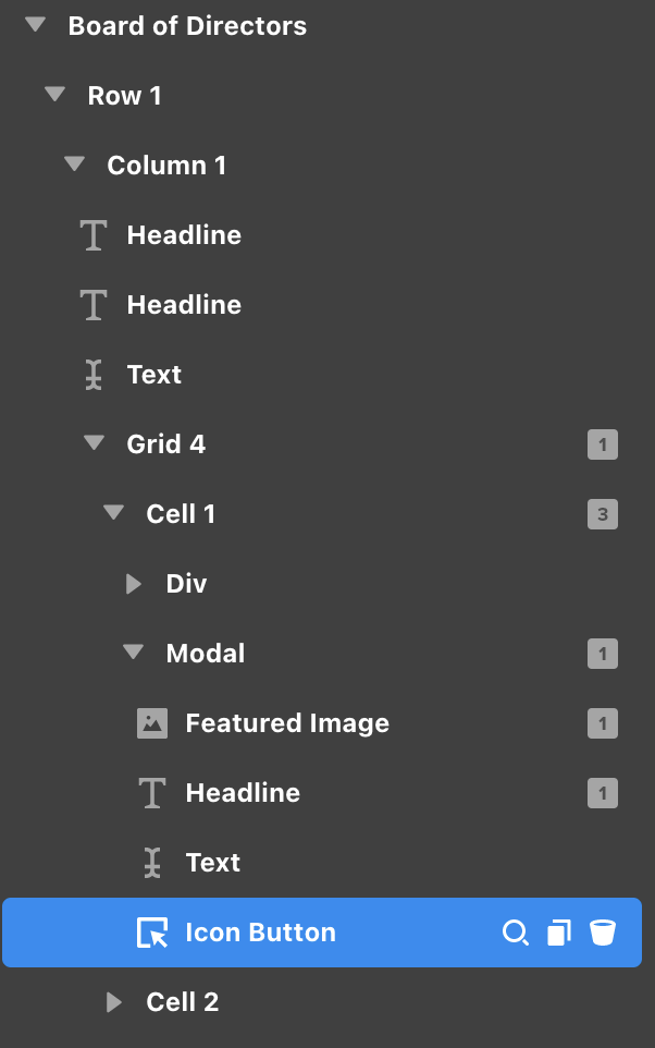 I have a Looper Provider (Grid) that is pulling in a Custom Post Type (Team Member) into Cells, with basic info in the Cell. Within the Cell is a Modal which contains more of the Team Member info (pulling in ACF fields and featured image). The Modal has a Toggle Hash set up, and then the whole Cell (the Looper Consumer) has its HTML tag set to a and the link URL is set to the Toggle Hash of the Modal within it.