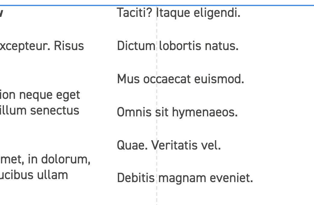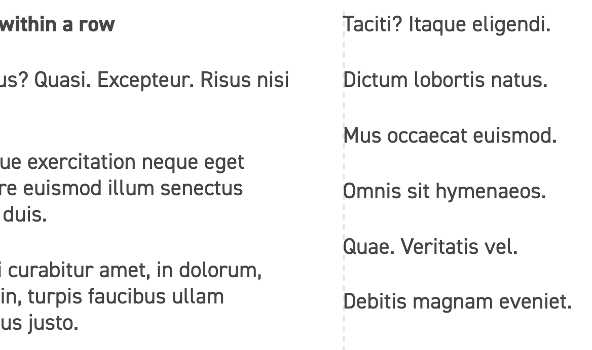 However, when left / right padding is added to the row element, the helper overlay becomes incorrectly aligned, looking like it is still based on the outer width of the row, rather than compensating for the added padding. This can be seen in the example below. The dotted line indicating the gap between two columns is too far over to the right: