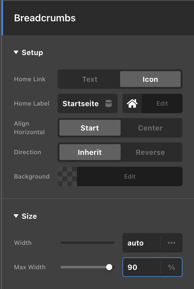 In your Breadcrumbs > Size settings, set a maximum width of 90% so that the breadcrumbs will collapse in smaller screens.