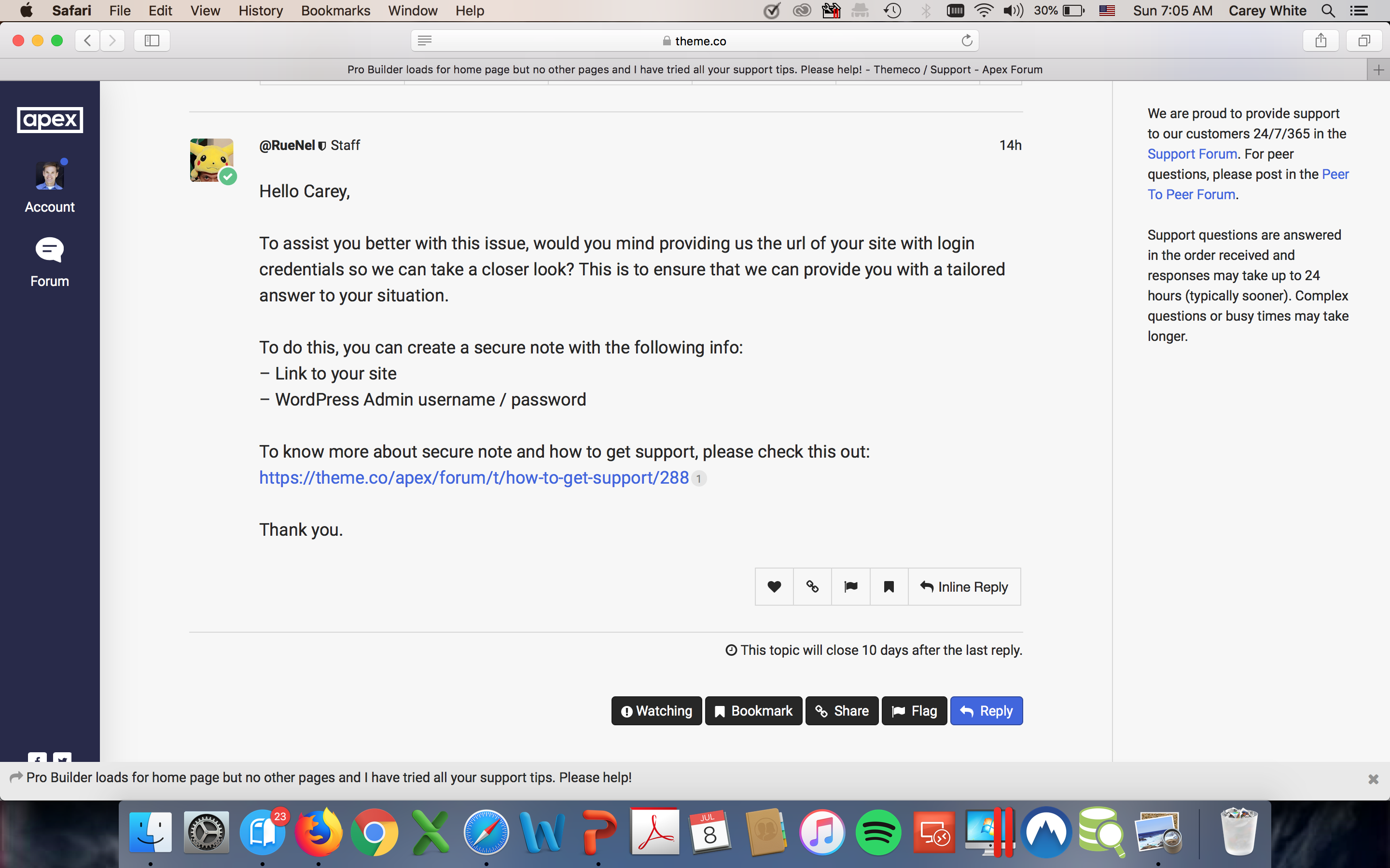 That wasn’t it but your answer helped me find the problem: Pro doesn’t work with Firefox latest version (61). It works with Chrome and Safari (both worked fine once I realized you must be on a different browser) but there’s something wrong when I use Firefox. You might want to tell your developers, I doubt I am the only customer using Firefox. In the meantime I can do development with Chrome or Safari, so I should be OK. Thank you!