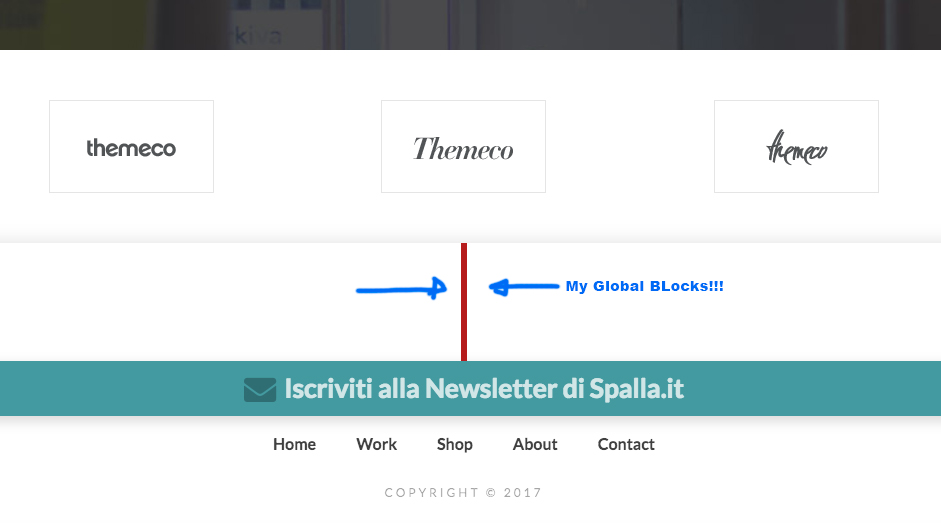 In the footer my GLOBAL BLOCKs is showed very thin (about 10 pixels!!) instead of full width! I tryed to create new empty GLOBAL BLOCK, I edit only background color but nothing to do… always 10 pixel width. I purged all caches, re-install the Child but I get always the same problem. Please give me support …