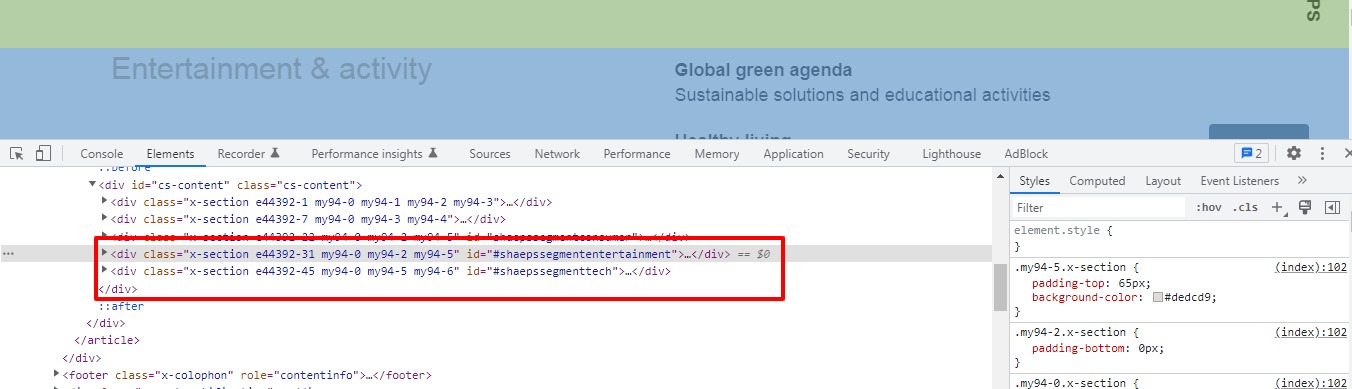 I have added an ID to three different sections on my /industry page - #segmentconsumer, #segmententertainment, and #segmenttech. On top of the page I have added three buttons with corresponding links - #segmentconsumer etc. I would expect to scroll down the page upon click, but instead I am directed to different pages or the 404 page.