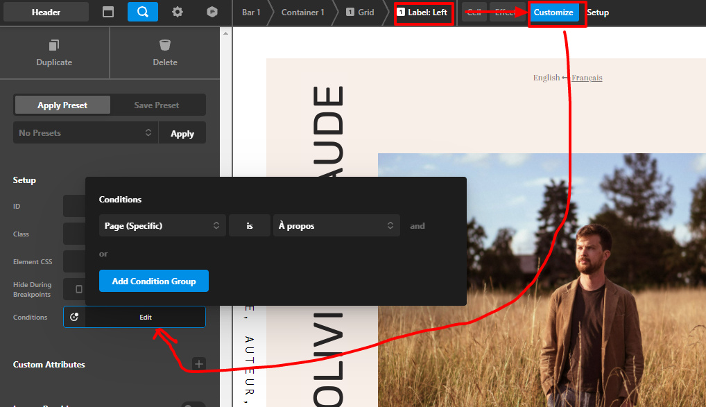 I’ve made a side menu that works properly on one page, and doesn’t on any other else. I’ve set all of them on no container, header, no footer, and i’ve changed the conditions on the menu to appear on the entire site, or on individual pages — it doesn’t change. The side bar is there properly speaking (i can click on it), but the content stays invisible.