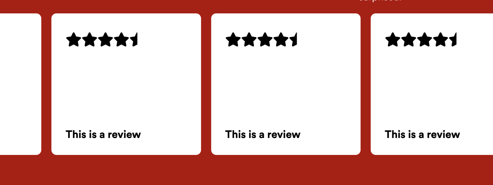 Is there a way to dynamically feed customer reviews and ratings into a carousel on a specific product page, perhaps by using loopers/providers and/or dynamic content? Below is a screenshot of what the carousel looks like. Hoping you can suggest a way to have each “card” display a customer review and rating.