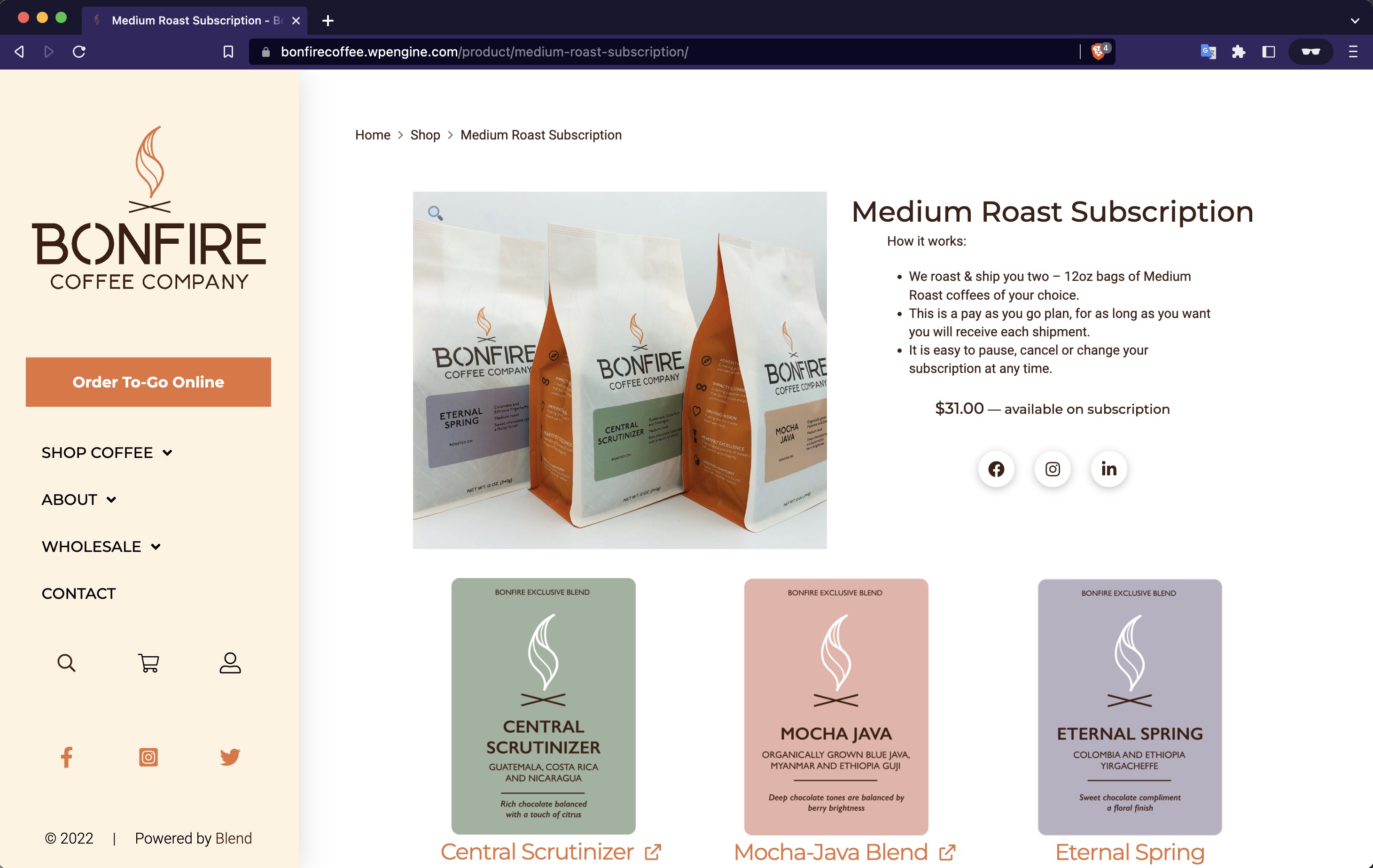 Here is an example: https://bonfirecoffee.wpengine.com/shop/coffee/subscriptions/medium-roast-subscription/