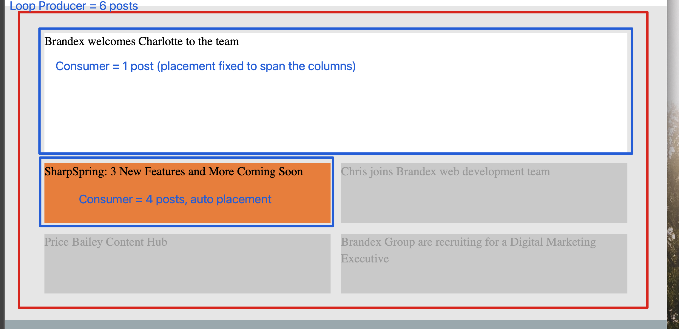 - The first cell in the grid is set to span across the width, and consume 1 post