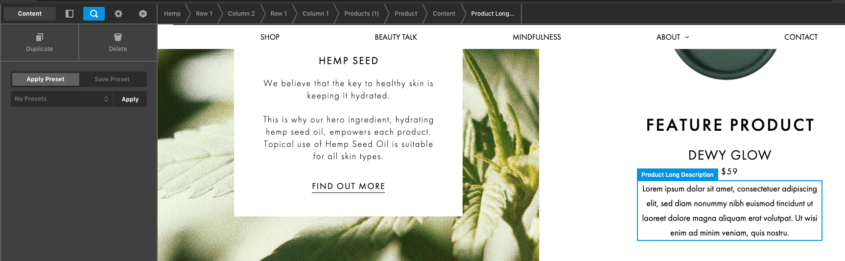 There’s doesn’t seem to be any customisation functions for ‘Product Long Description’ element - so I cant tweak the font size or width, or change the font colours etc. etc.