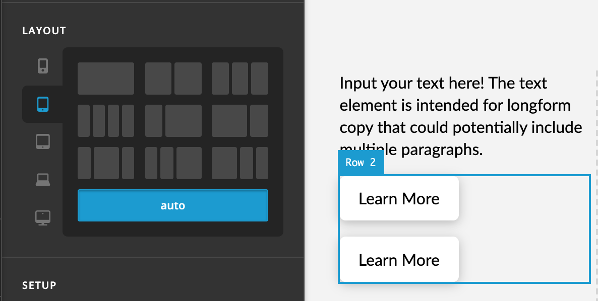 Put that in the Row’s Element CSS and it will start wrapping again. We just decided that the native behavior should be predictable in that the column sizes always match your Row’s Layout configuration.