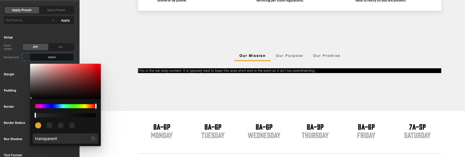 When setting the tab panel background to transparent it displays as black. Done this numerous times in 3.2.3.