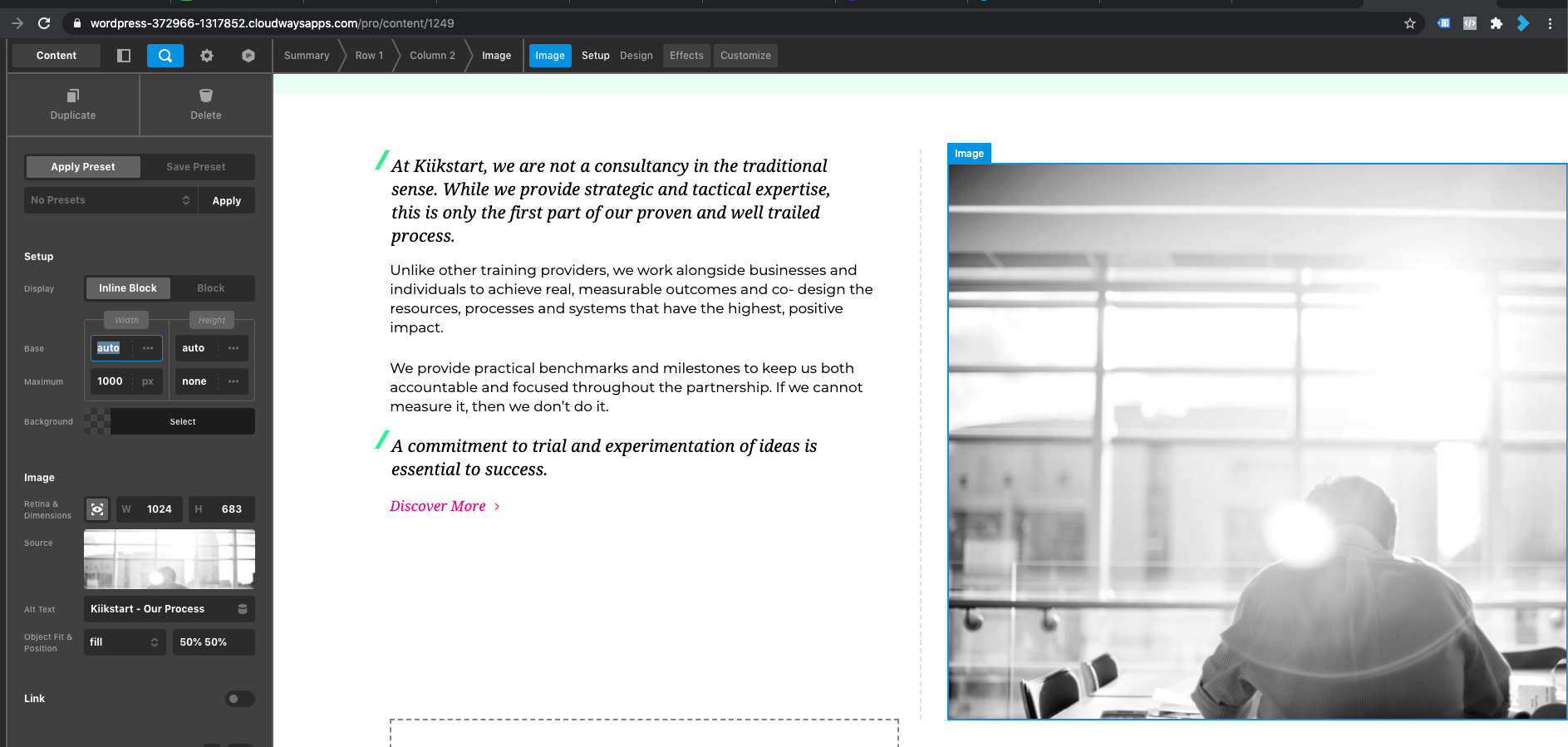 When upgrading from non-Beta Pro to RC4 I’ve noticed in a few sections of one of my sites the images in a basic two column row are bleeding over the Row margins when a Max-width value is set, but the Base width is set to ‘Auto’ - which is the default offering. See below the max is set to 1000px, the base width is Auto, so the image is bleeding over.