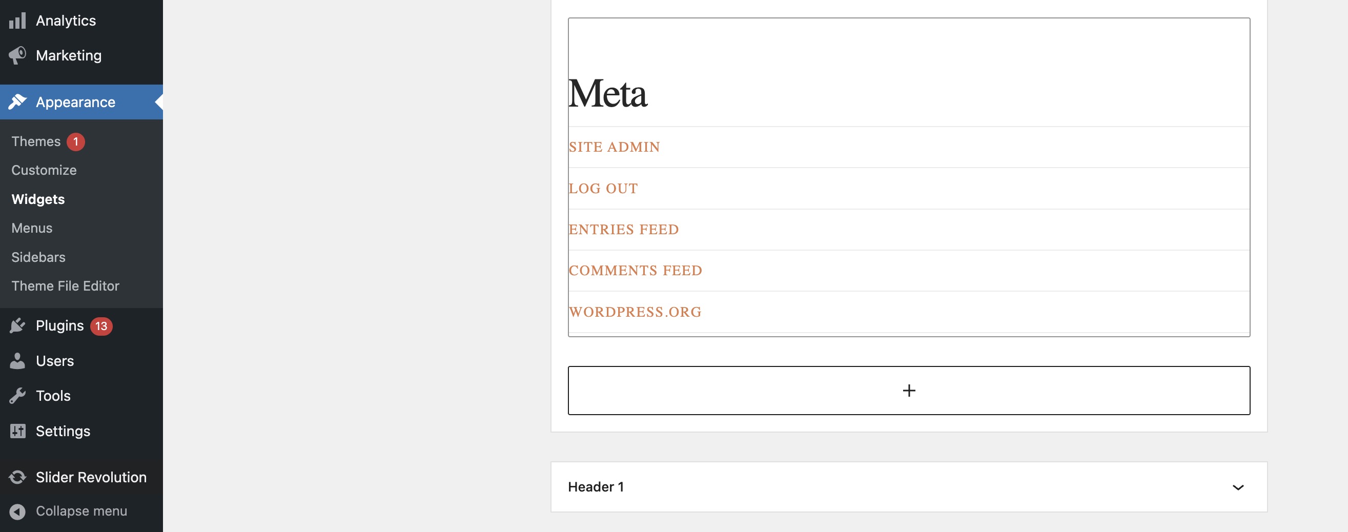 Please go to Appearance > Widgets > Main Sidebar. This is where you can remove the Meta widget.
