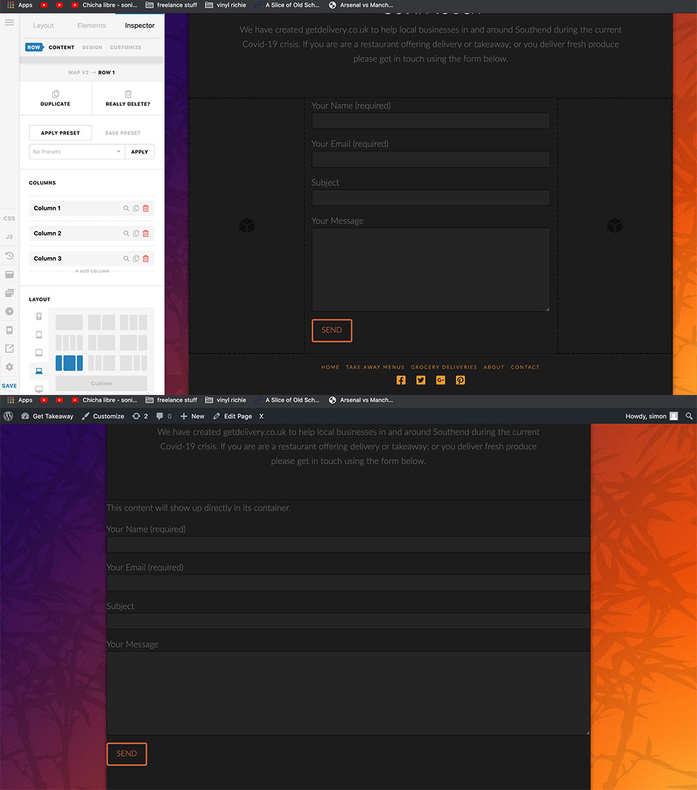 I am using the restaurant expanded demo theme. WhenI try to make a row with 3 columns it looks fine in the editor but if i view the site out of the editor it is not displaying correctly.