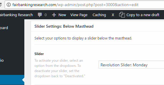 having implemented a child theme, to work with the Cookie Plugin, Slider revolution refuses to connect in the “Below Masthead” location, but happily connects with the specified Slider when in the body of the page http://fairbankingresearch.com