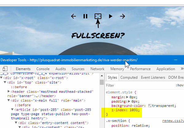 If the fullscreen button is clicked the screen is now overlapped by the nav- and logobar.