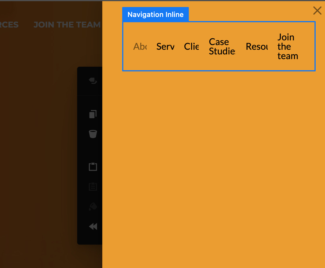 This is in an off canvas megamenu with a navigation inline element. When right clicking, the settings appear behind.