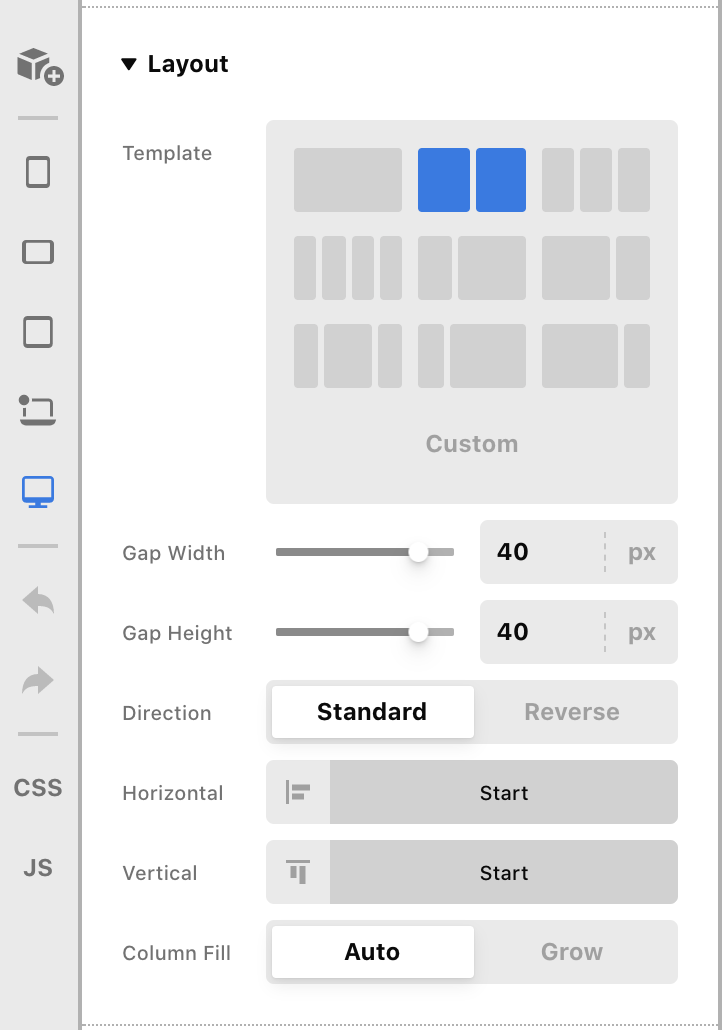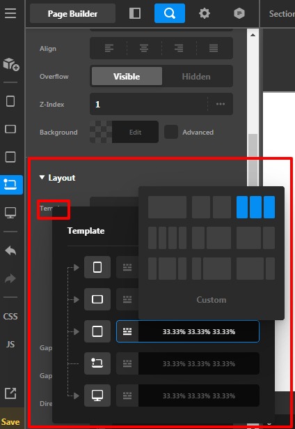 To set the different column layouts on the different breakpoints. You need to go to the Cornerstone page builder —> Row —>Layout—>Template, You can set the columns for each breakpoint