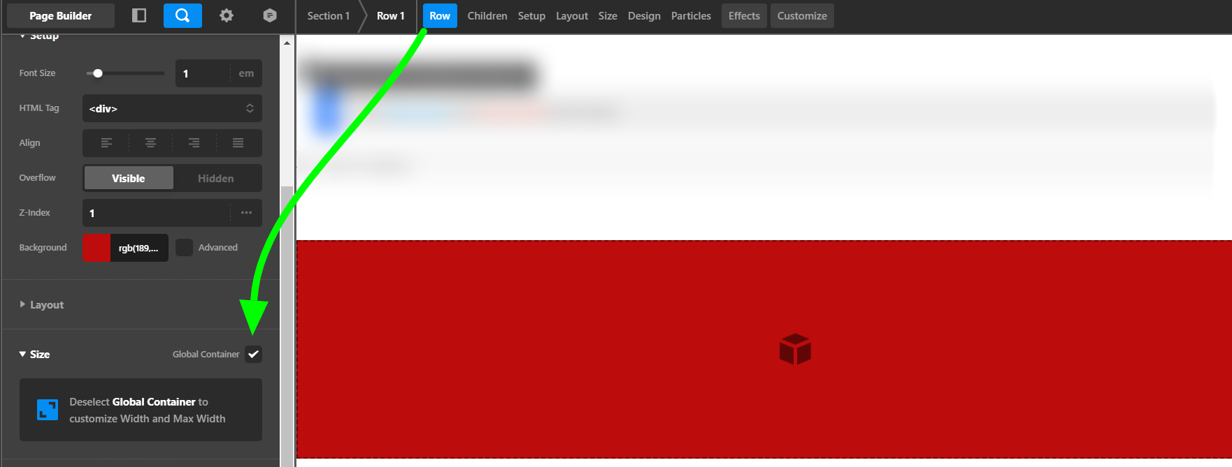 Yes, in order for the row to be the same as the section, you need to disable the global container.