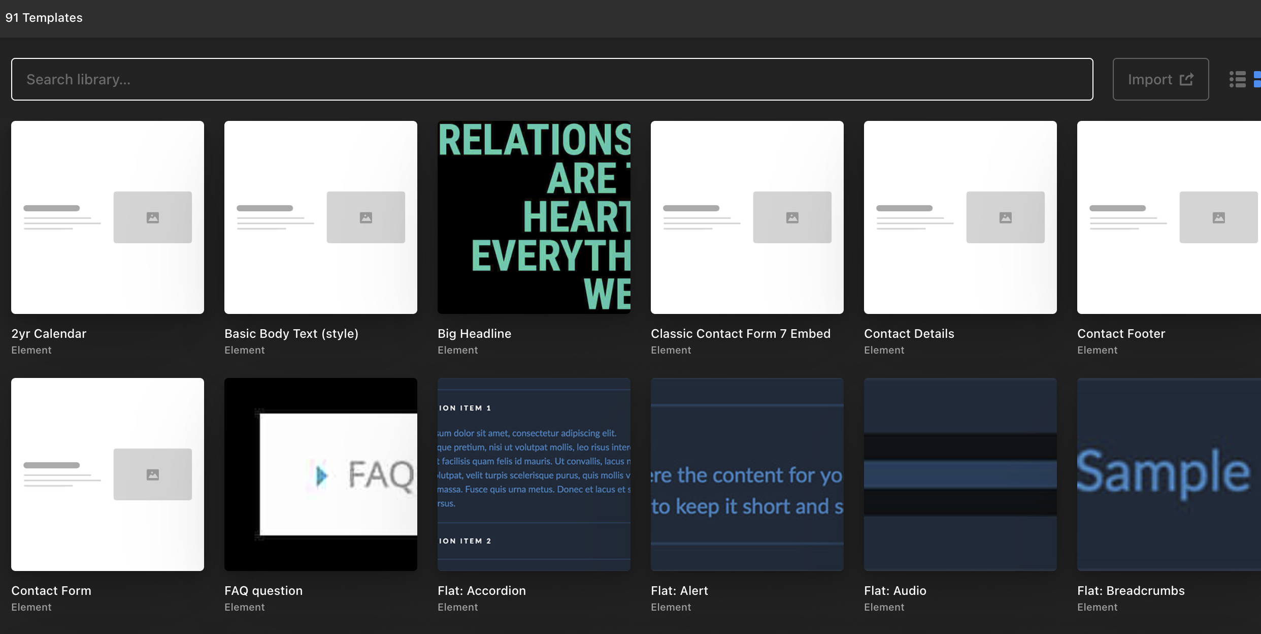 I have created templates, and can see them all in the library manager. But how do I input these self-made templates into the site itself? Some of my element templates show up under the elements tab. Shouldn’t all my element templates show up in the elements tabs?