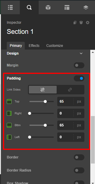 How can we please change the sections that are added to pages so they have smaller padding/margins than currently