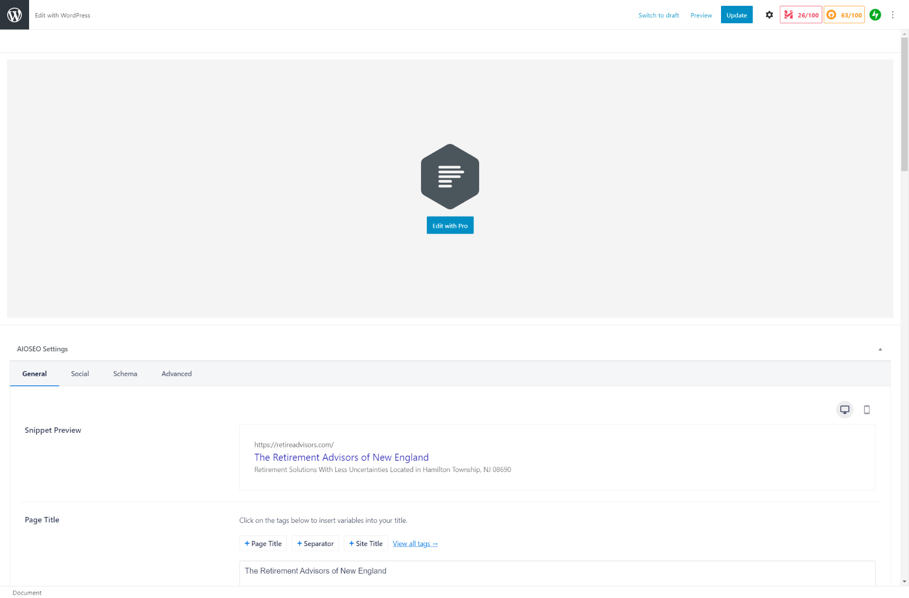 This may seem like a basic question, but how do I get around the “Edit With Pro” section so I can see the wordpress code for the page. There is a section on the page I need to delete.