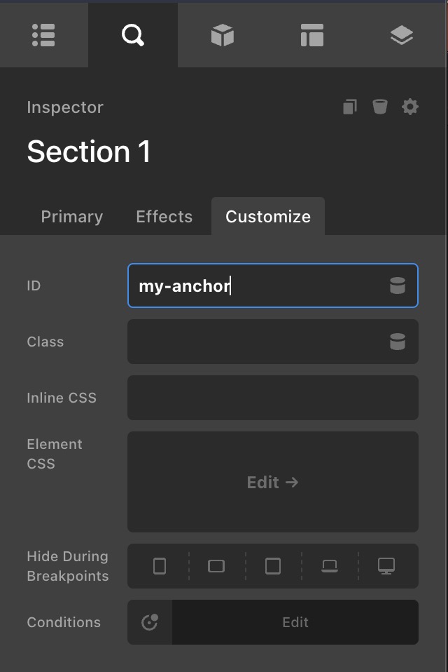And then in your menu item or a text link, you can use the ID as an anchor like #my-anchor. If you are trying out One Page Navigation, you may need to check this out: