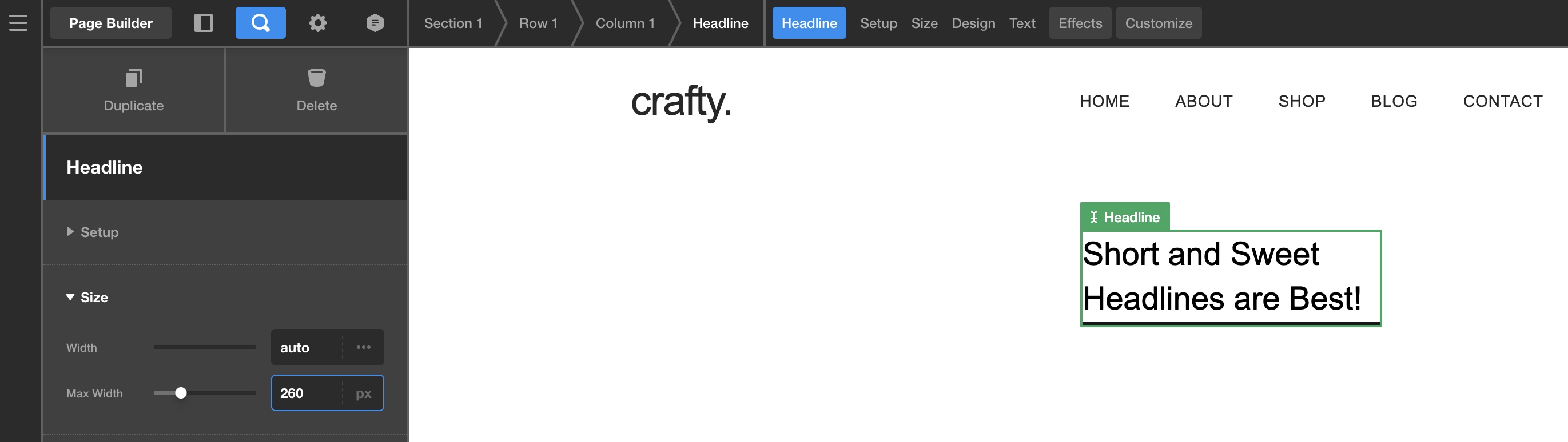 Hi, I am using a Headline element and a Button element both with the bottom border activated. How can I shorten these borders and at the same time have them centered?