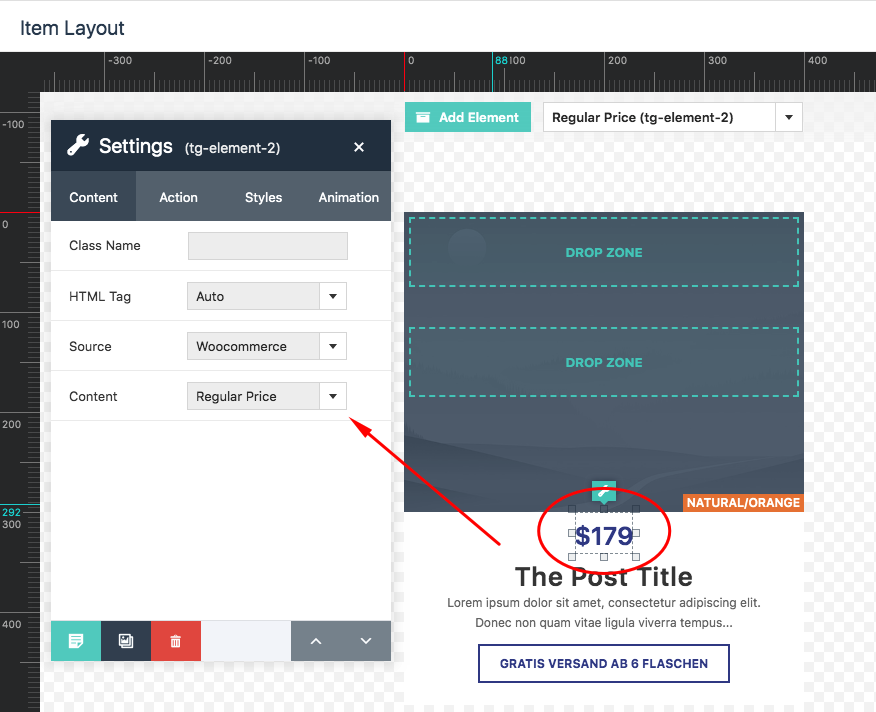 Please edit your grid and make sure that the content is set to “Regular Price”. By default, it is set to display the “Price” which will display the whole price information.
