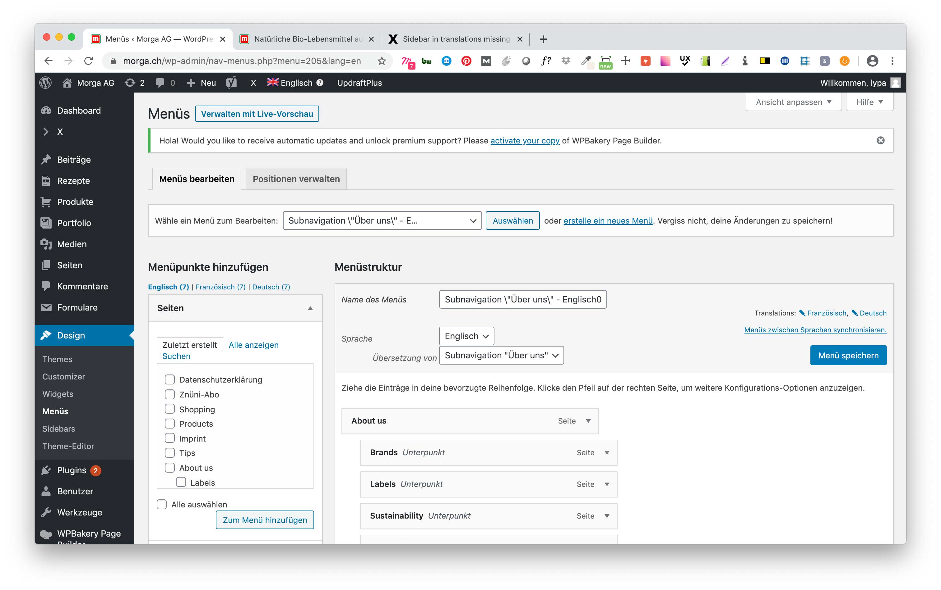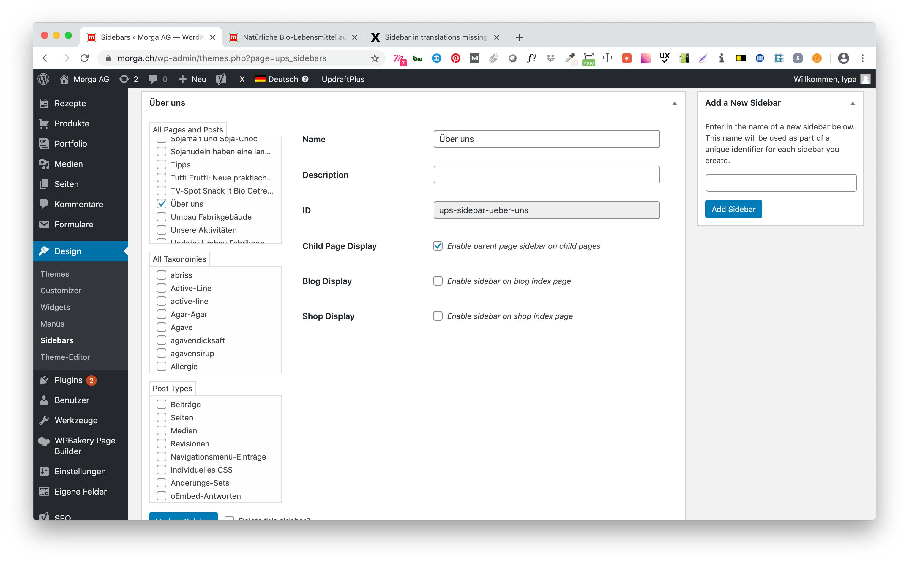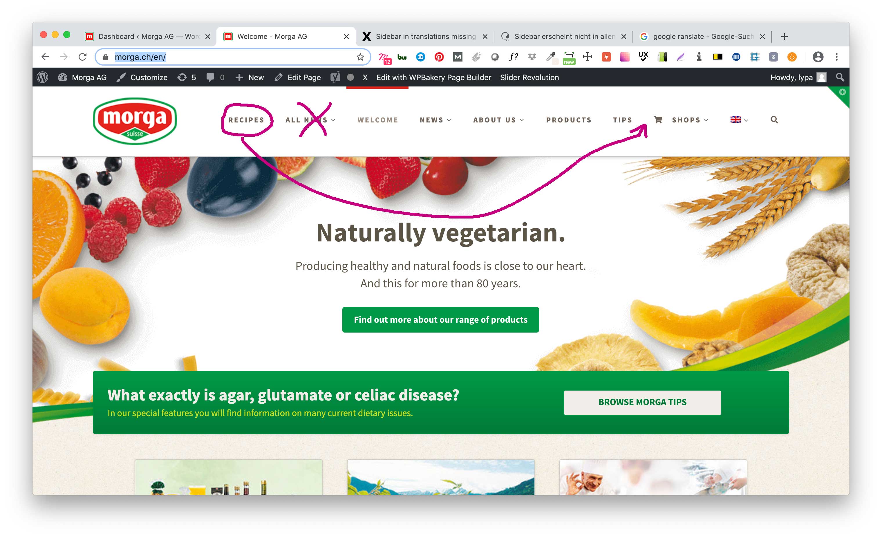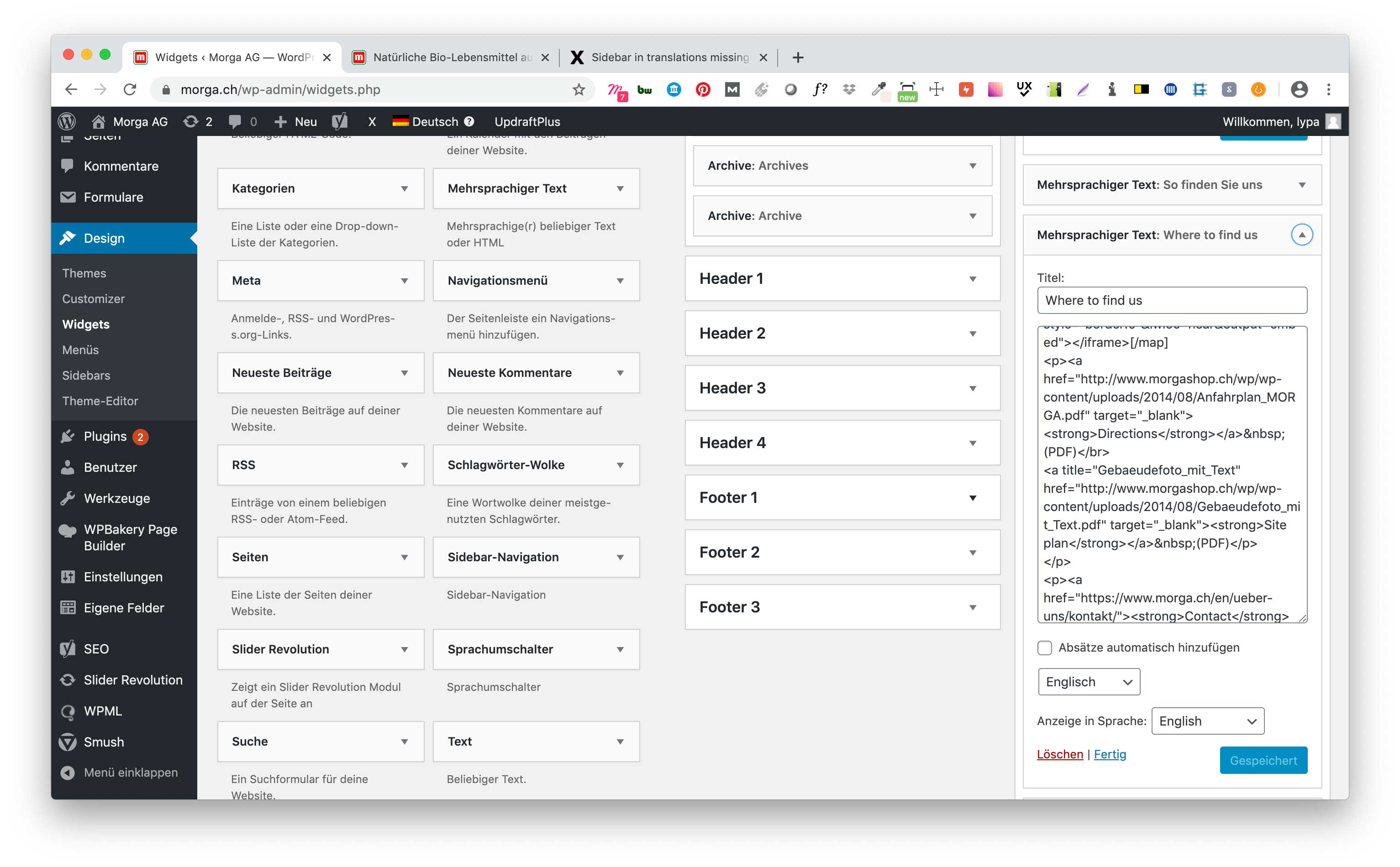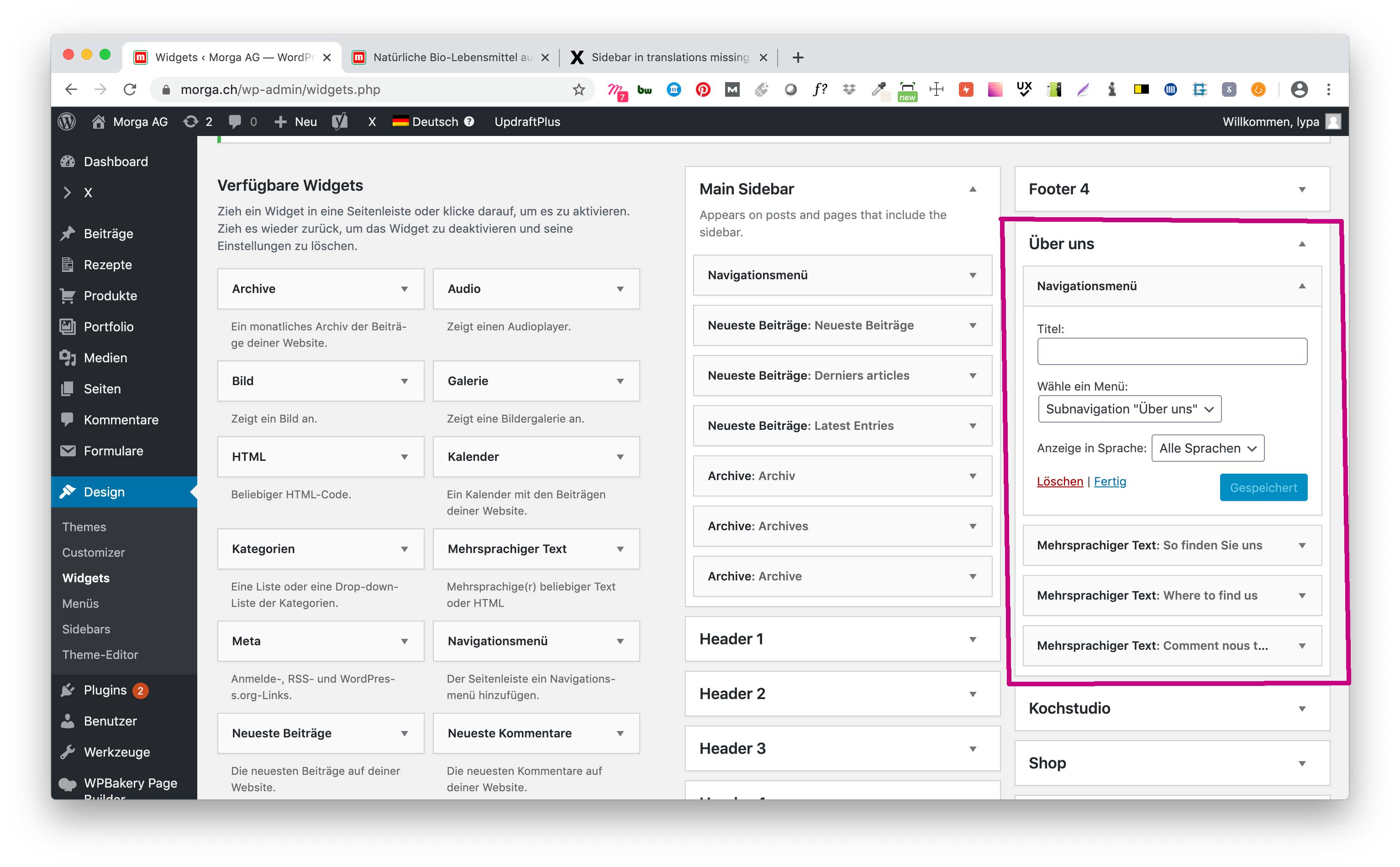 And again we have the same problem on the page “About us” (https://www.morga.ch/ueber-uns/): The sidebar is available in German, but not in English and French.