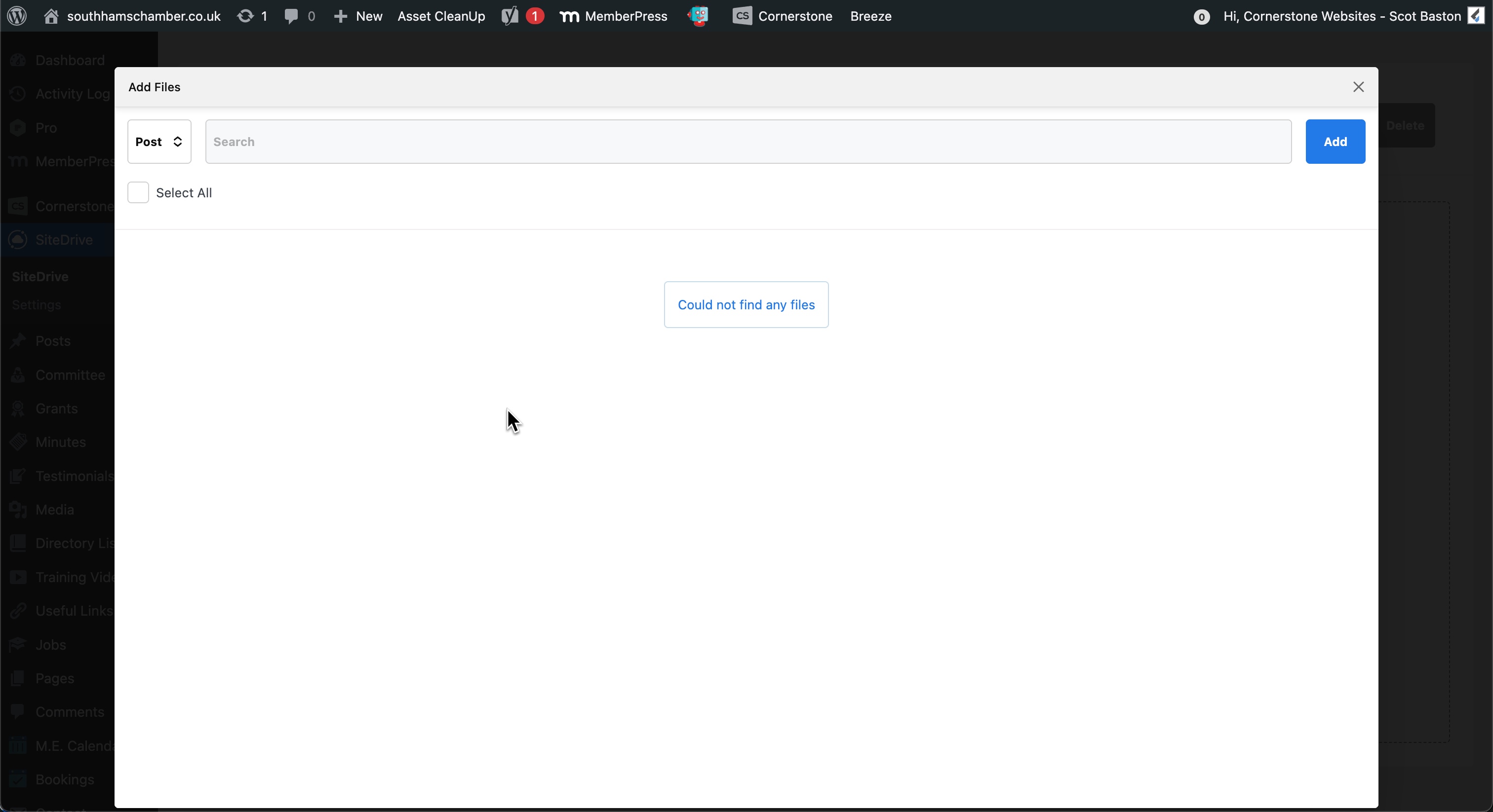 I have a single site with a local sitedrive that cannot see any files for Media, Posts, or ACF, yet Themes and Plugins show. any ideas?